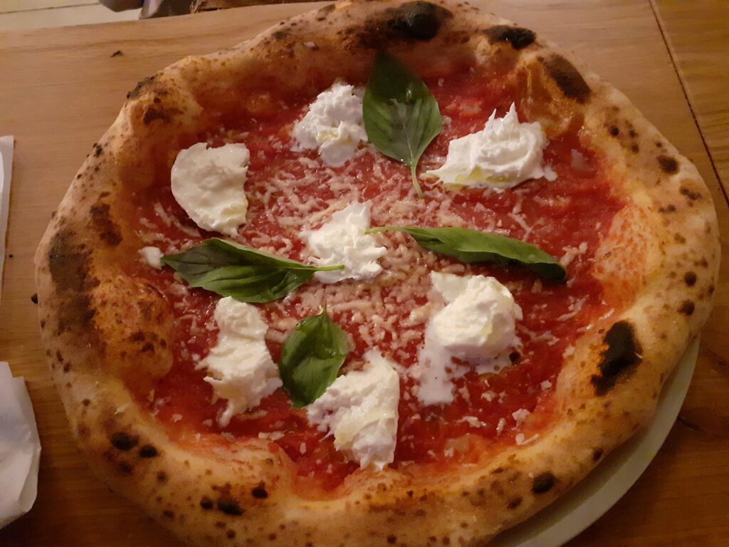 Die Pizza hat einen dicken Rand und ist gut belegt. Sie ist größer als der Teller, auf dem sie serviert wird. Wir haben uns für eine Bufala (oder Bufalina) mit Büffelmozzarella entschieden. Der Teig ist fluffig, der Boden eher weich statt knusprig. Die Tomatensauce ist leicht gewürzt und überdeckt den Geschmack des Mozzarellas nicht.